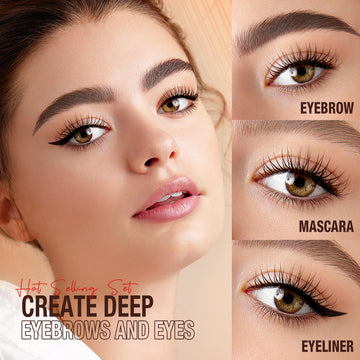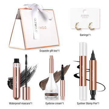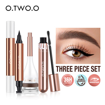 Conjunto de Maquillaje de Ojos de O.TWO.O. Incluye crema para cejas, delineador de ojos y máscara, todo lo que necesitas para resaltar tu mirada. ¡Recibe un aro de regalo para un toque festivo adicional!