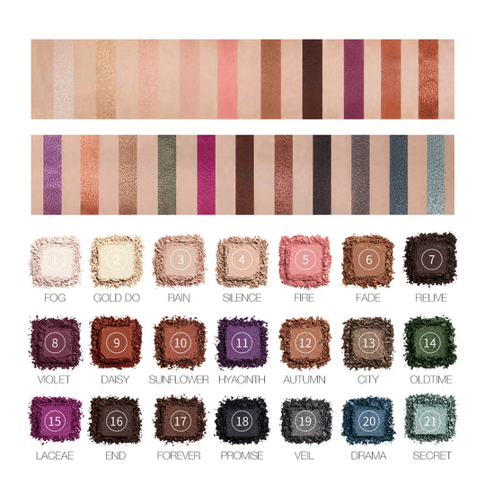 La paleta de sombras de ojos de 21 colores es perfecta para la venta al por mayor y distribución. Con una amplia variedad de tonos, es versátil y adecuada para diferentes preferencias.