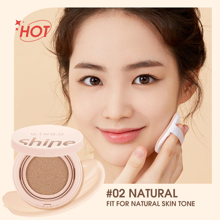 Base ligera O.TWO.O SHINE con efecto almohadilla de aire para una piel radiante y suave.